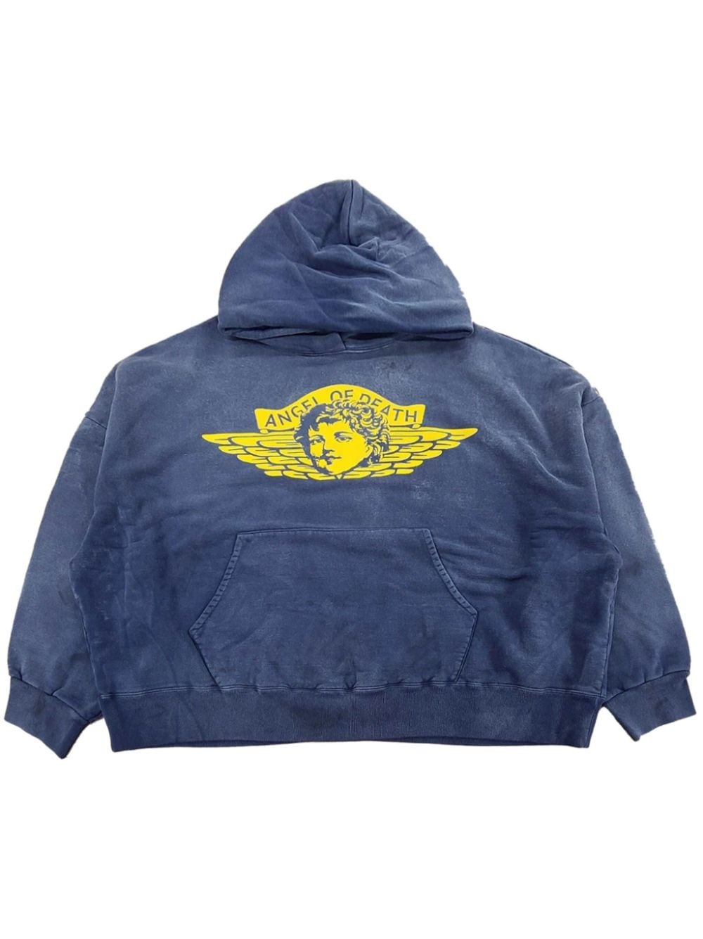 logo-print hoodie Highlights - Navy blue - Cotton - Jersey texture - Bleached effect - Logo print to the rear - Slouchy hood - Graphic print to the front - Long sleeves - Front pouch pocket - Ribbed cuffs and hem Imported Composition Cotton 100%