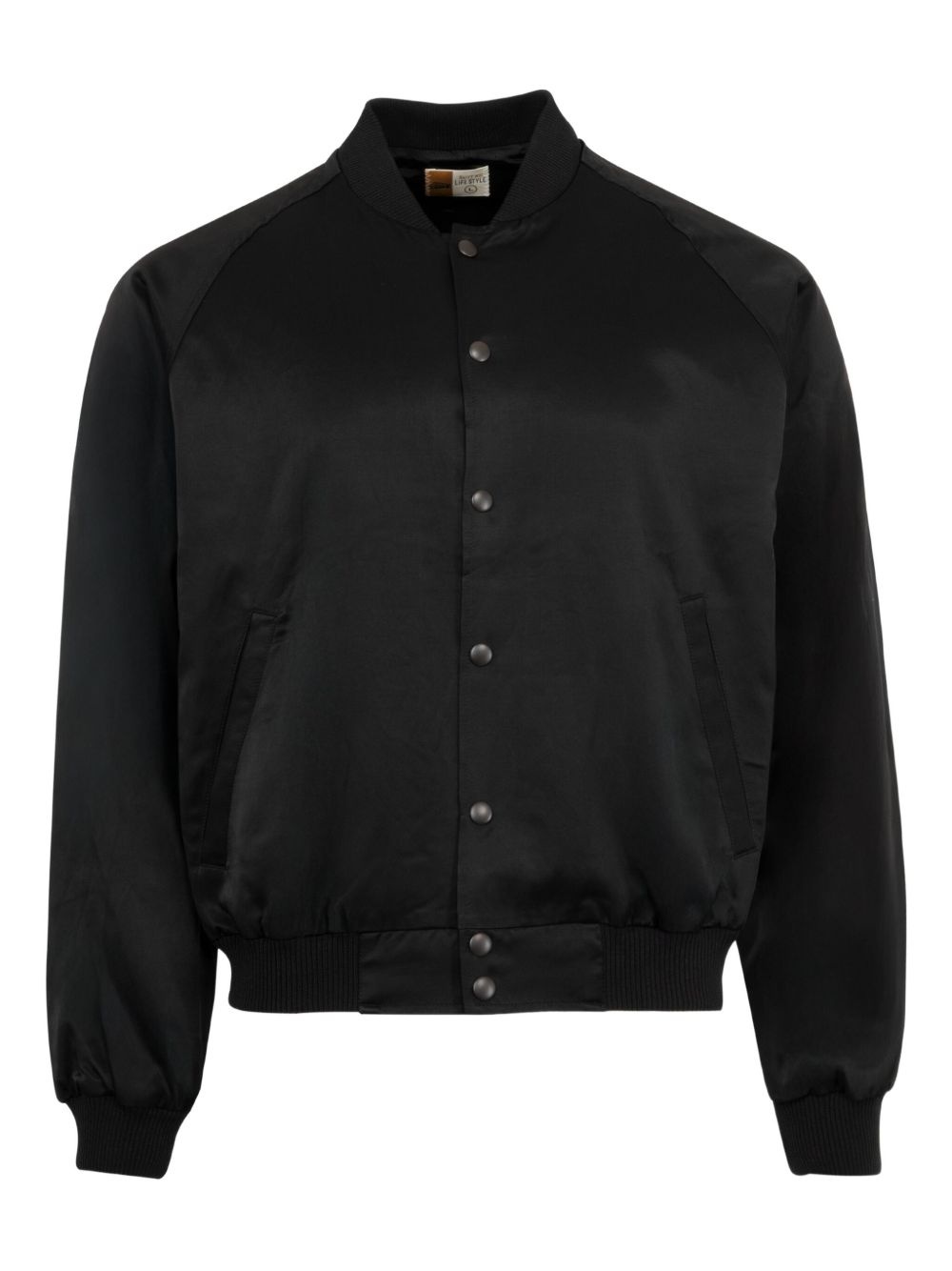 Love song satin jacket Highlights - Black - Front press-stud fastening - Two front welt pockets - Long raglan sleeves - Ribbed cuffs and hem Imported Composition Rayon 60%, Cotton 40%