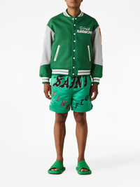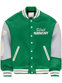 Pigeon Varsity graphic-print bomber jacket Highlights - Emerald green - Wool blend - Stripe detailing - Text print - Graphic print to the rear - Baseball collar - Front press-stud fastening - Long sleeves - Elasticated cuffs and hem - Straight hem Imported Composition Wool 90%, Nylon 10% Washing instructions Read Manufacturer Guidelines