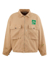 pinstripe zip-up jacket Highlights - Beige - Two front flap pockets - Embroidered logo patch - Zip fastening - Dropped shoulder seams Imported Composition Cotton 100% Washing instructions Dry Clean Only