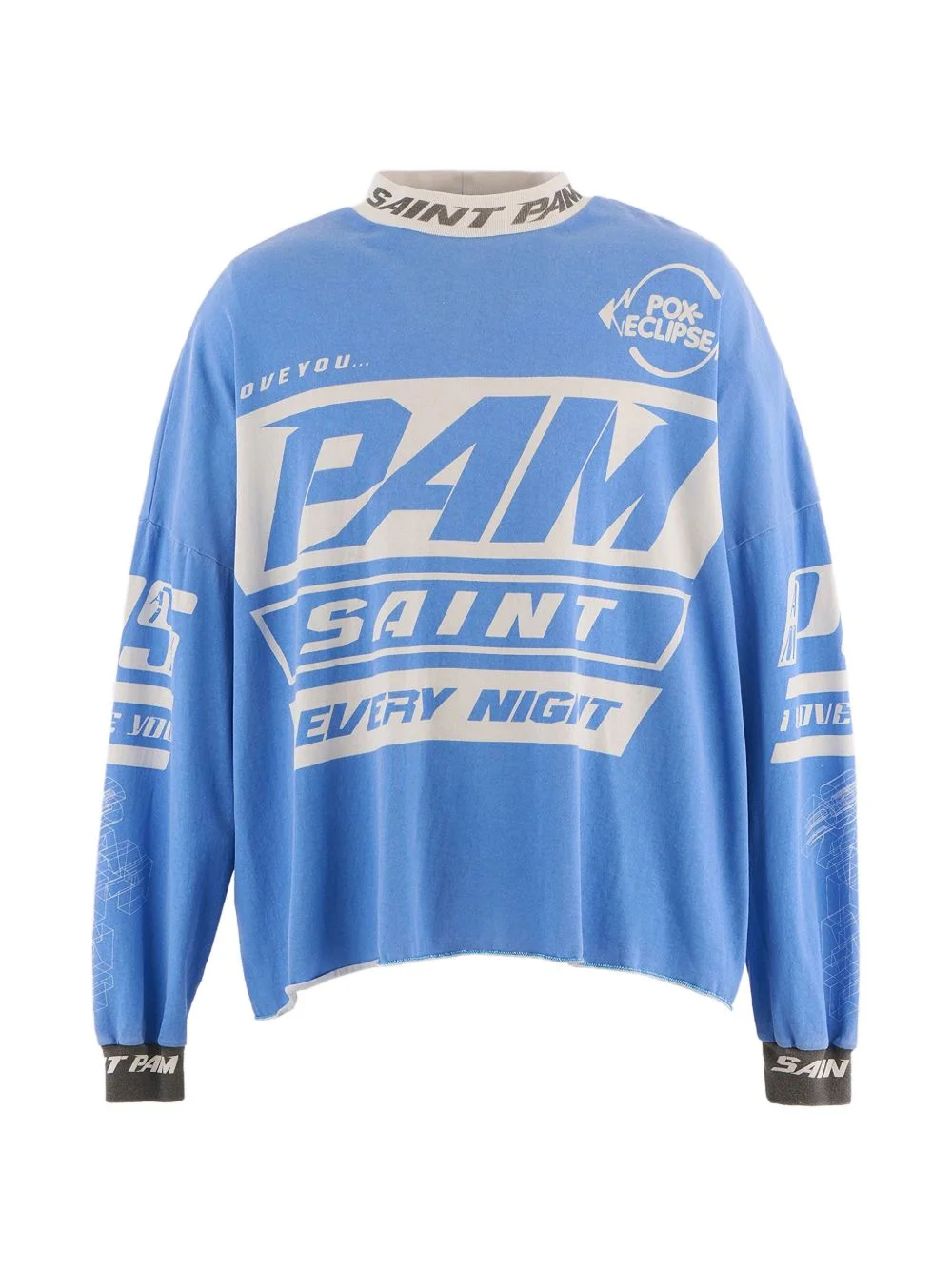 printed long-sleeved T-shirt Highlights - Blue - Graphic print - Crew neck - Long sleeves - Ribbed cuffs - Raw hem Imported Composition Fabric 100% Washing instructions Read Manufacturer Guidelines