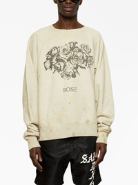 Rose-print crew-neck sweatshirt SAINT MXXXXXX showcases its passion for vintage clothes in this crew-neck sweatshirt. It's made from a soft cotton jersey with a distressed effect and finished with graphic prints at the front and rear. Highlights - Light beige/dark grey - Cotton - Distressed effect - Floral print to the front - Graphic print to the rear - Crew neck - Long sleeves - Ribbed cuffs and hem Imported Composition Cotton 100%