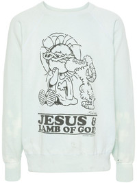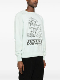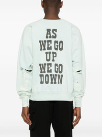slogan-print cotton sweatshirt Highlights - Light blue - Cotton - Graphic print to the front - Slogan print to the rear - Distressed effect - Ripped detailing - Crew neck - Long raglan sleeves - Ribbed cuffs and hem Imported Composition Cotton 100% SIZE & FIT Model measurements Height 6 ft 2 in(1.88 m) Bust/Chest 36.61 in(93 cm) Hips 35.82 in(91 cm) Waist 27.95 in(71 cm) FittingInformation Designed for a relaxed fit, this piece allows for comfort and movement when worn Made from a midweight non-stretch fabric, this piece offers minimal elasticity when worn This piece fits true to size – take your usual size Washing instructions Hand Wash