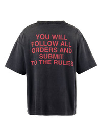 slogan-print T-shirt Highlights - Black - Crew neck - Drop shoulder - Straight hem - When buying this unisex item, keep in mind that it is graded in standard men's sizing. Imported Composition Cotton 100%