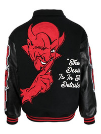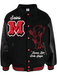 slogan print varsity jacket black/red wool blend/leather logo patch at the chest slogan print embroidered design classic collar long sleeves contrasting-fabric sleeves ribbed cuffs and hem front press-stud fastening two diagonal pockets to the sides Imported Composition Outer: Leather 100%, Wool 90%, Nylon 10% Lining: Rayon 100%, Polyester 100% Washing instructions Dry Clean Only