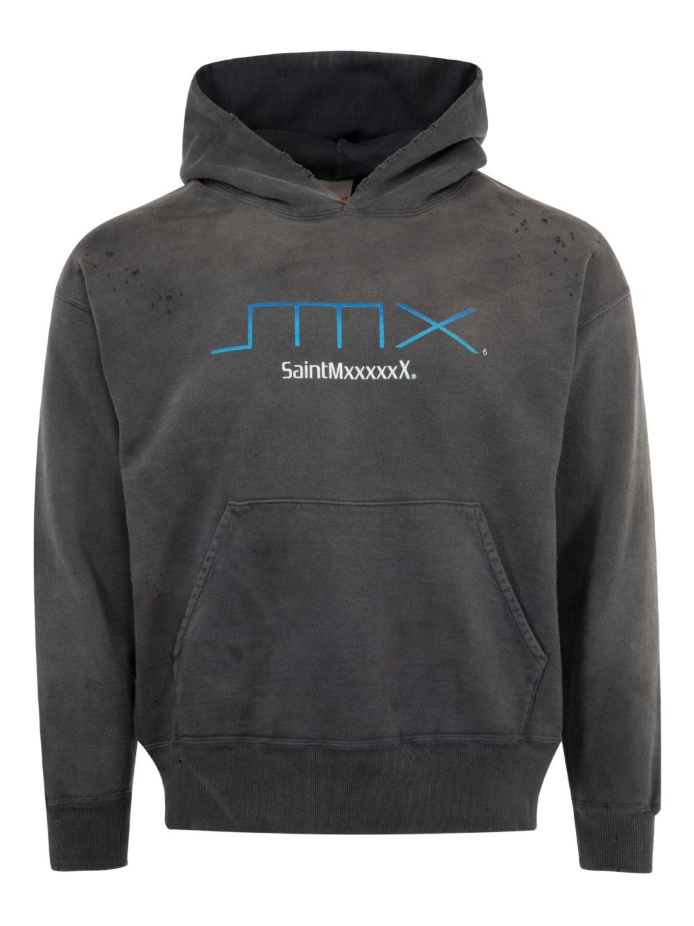 SMX6 Distressed Logo-Print Cotton-Jersey Hoodie Black