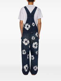 wreath-print denim overalls