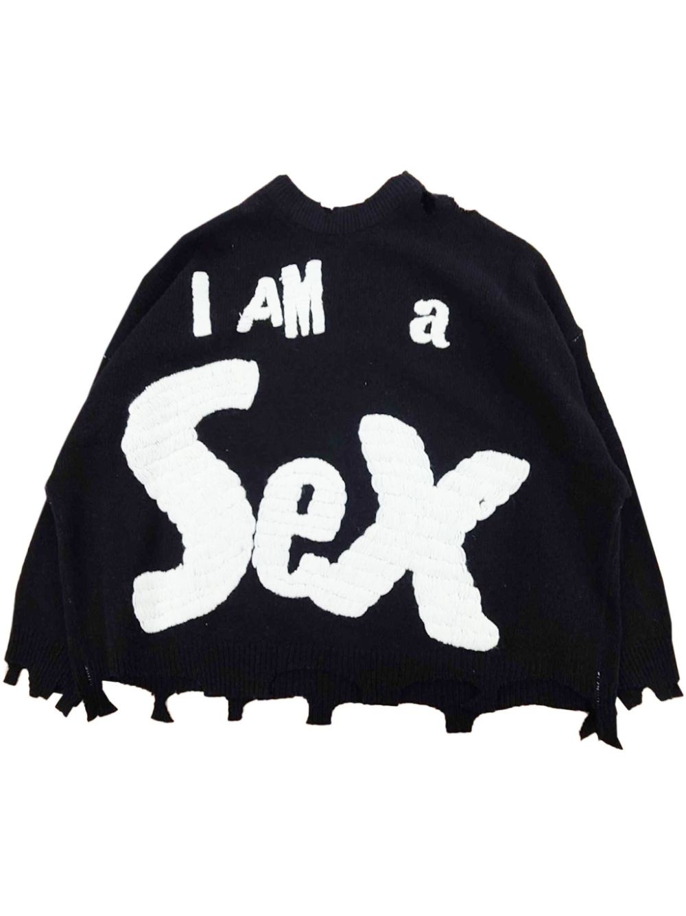 x Sex Pistols embroidered sweater Highlights - Black - Distressed finish - Crew neck - Long sleeves Imported Composition Body: Wool 85%, Copolyester 10%, Acrylic 5%