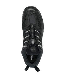 ACS Pro Advanced low-top sneakers Salomon S/Lab presents its latest trail running shoe, the ACS Pro Advanced, in an all-black colourway. To the side, a rubber cage secures the mesh upper with fang-like metal fastenings that are threaded with a signature lace and toggle system. Underfoot, a sturdy rubber sole offers comfort and traction against rough terrain. Highlights - Black - Caged design - Mesh panelling - Silver-tone hardware - Round toe - Front lace-up fastening - Pull-tab at the heel - Chunky rubber sole Made in United Kingdom Composition Outer: Mesh 100%, Polyurethane 100% Lining: Fabric 100% Sole: Rubber 100%