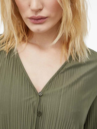 buttoned pleated top Highlights - Olive green - Pleated texture - V-neck - Button fastening - Long sleeves Imported Composition Fabric 100% Washing instructions Read Manufacturer Guidelines