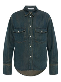 chest-pocket denim shirt Highlights - Dark blue - Button fastening - Chest pockets - Long sleeves - Curved hem Imported Composition Lyocell 100% Washing instructions Read Manufacturer Guidelines
