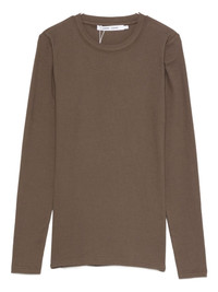 fine-ribbed T-shirt Highlights - Brown - Round neck - Long sleeves Imported Composition Organic Cotton 95%, Elastane 5% SIZE & FIT Model measurements Height 5 ft 10 in(1.77 m) Bust/Chest 32.28 in(82 cm) Hips 35.03 in(89 cm) Waist 25.19 in(64 cm) FittingInformation Designed for a close fit throughout Made from a midweight stretch fabric, this piece offers elasticity and flexibility when worn Washing instructions Read Manufacturer Guidelines
