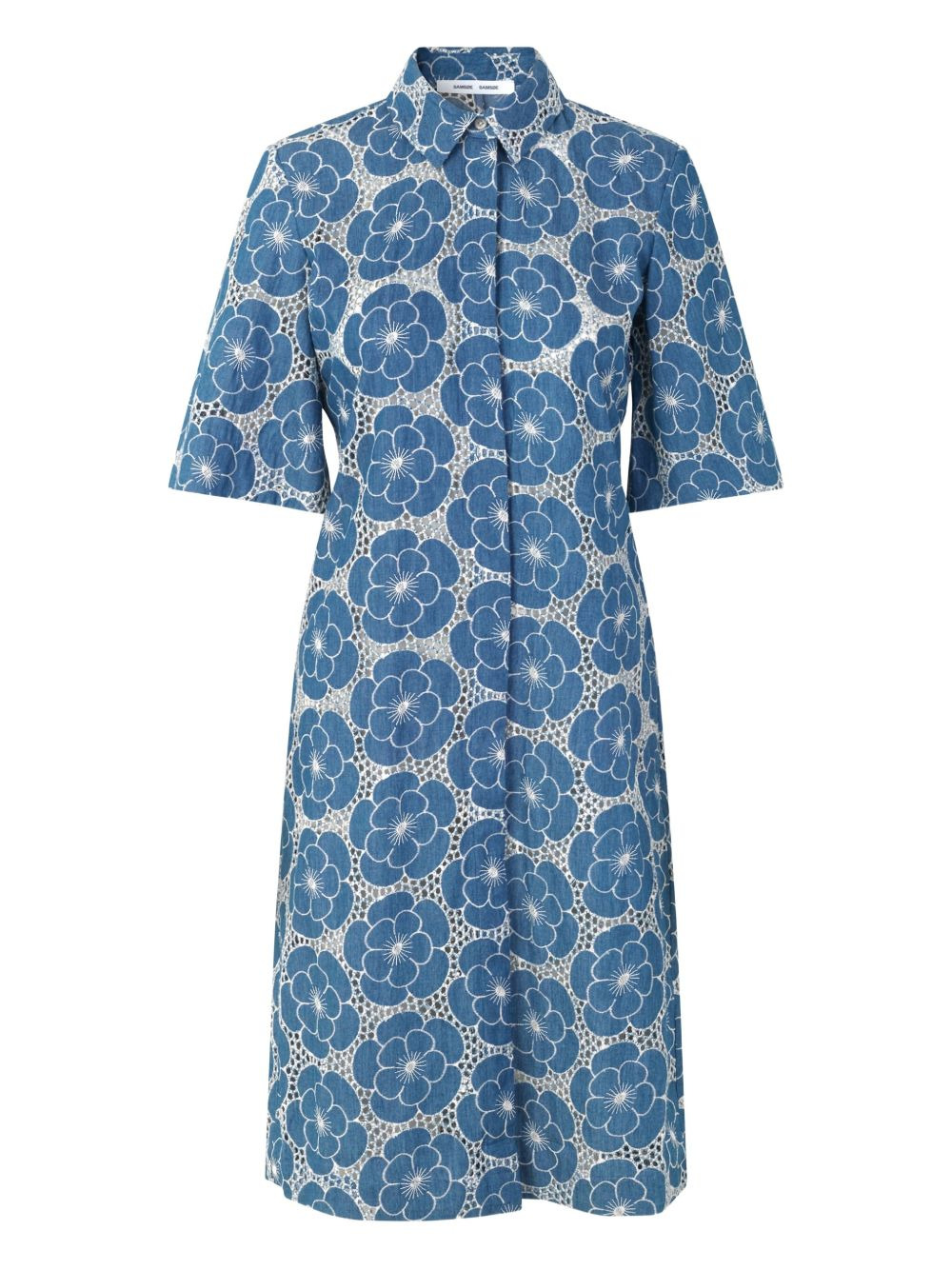 floral-print collared midi dress Highlights - Blue - Floral print - Collared neckline - Short sleeves - Button fastening Imported Composition Cotton 100% Washing instructions Read Manufacturer Guidelines