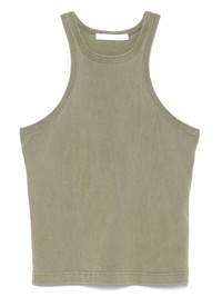 Helene tank top Highlights - Olive green - Crew neck - Sleeveless - Racerback Imported Composition Organic Cotton 100% SIZE & FIT Model measurements Height 5 ft 10 in(1.78 m) Bust/Chest 33.46 in(85 cm) Hips 36.22 in(92 cm) Waist 23.22 in(59 cm) FittingInformation Designed for a slim fit that sits just away from the body offering a close yet comfortable fit Made from a lightweight non-stretch fabric, this piece offers minimal elasticity when worn