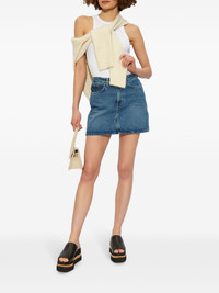 organic cotton denim skirt Highlights - Indigo blue - Organic cotton - Denim - High-rise - Belt loops - Concealed fly and button fastening - Classic five pockets - Thigh-length - Straight hem Imported Composition Organic Cotton 100%