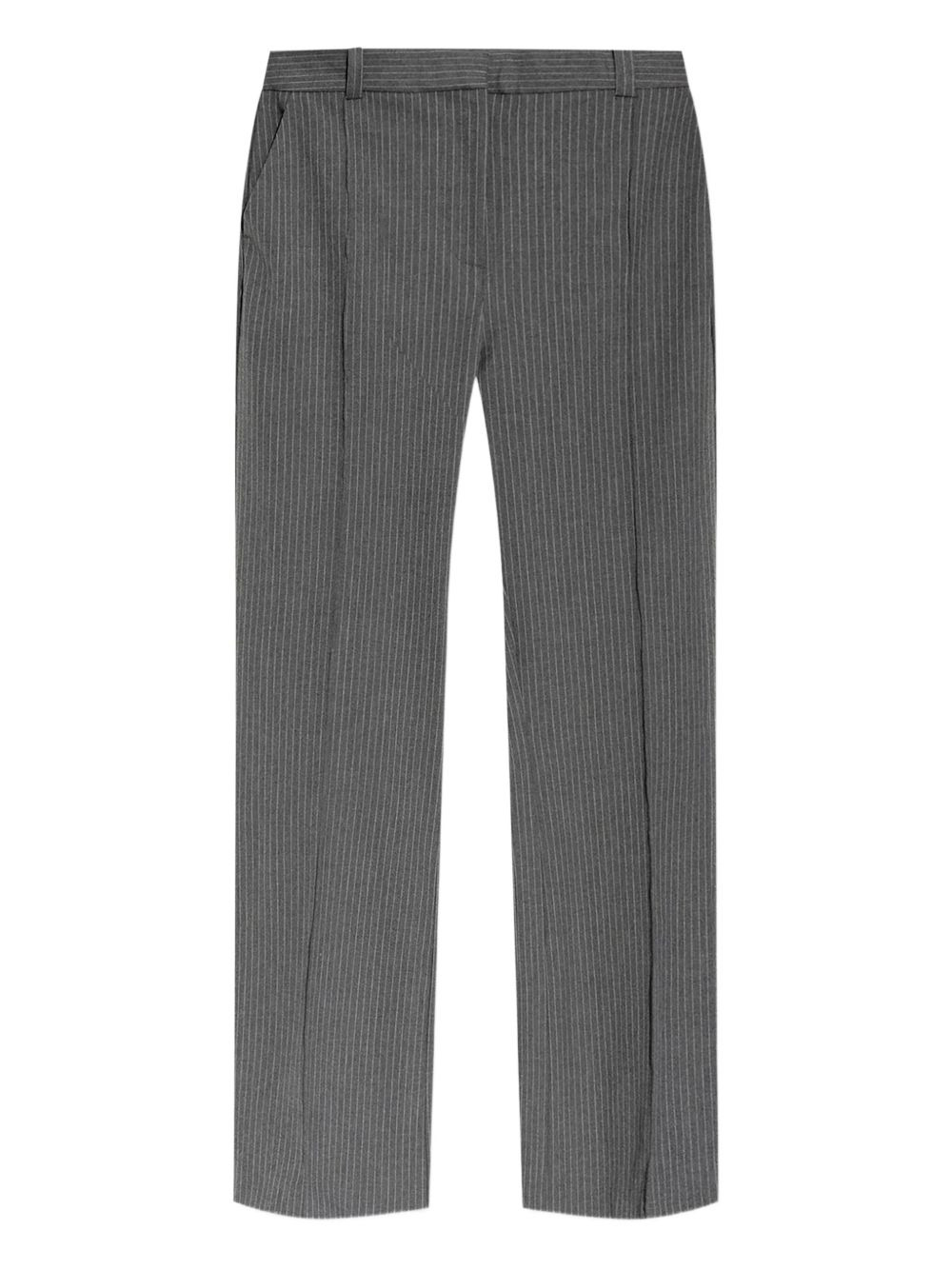 pinstripe pleated trousers Highlights - Dark gray - Pinstripe pattern - Front slash pockets - Rear welt pockets - Belt loops - Button fly Imported Composition Polyester 62%, Viscose 34%, Elastane 4% Lining: Recycled Polyester 100%