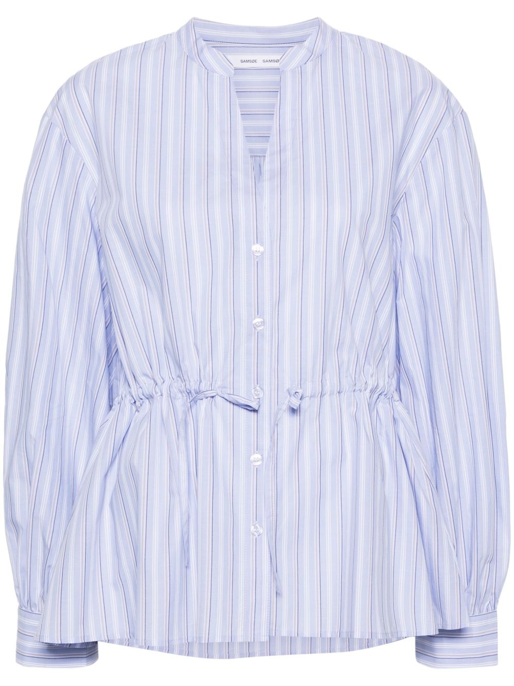 Saamelie striped blouse Highlights - Light blue - Organic cotton - Poplin texture - Vertical stripe pattern - Band collar - Split neck - Front button fastening - Drawstring waist - Long sleeves - Straight hem Imported Composition Organic Cotton 100% SIZE & FIT Model measurements Height 5 ft 11 in(1.8 m) Bust/Chest 33.07 in(84 cm) Hips 37.4 in(95 cm) Waist 25.19 in(64 cm) FittingInformation Designed to be unstructured, offering a loose fit throughout The adjustable drawstring means that you can adjust this piece’s fit to suit your comfort and preference Made from a midweight non-stretch fabric This piece fits true to size – take your usual size