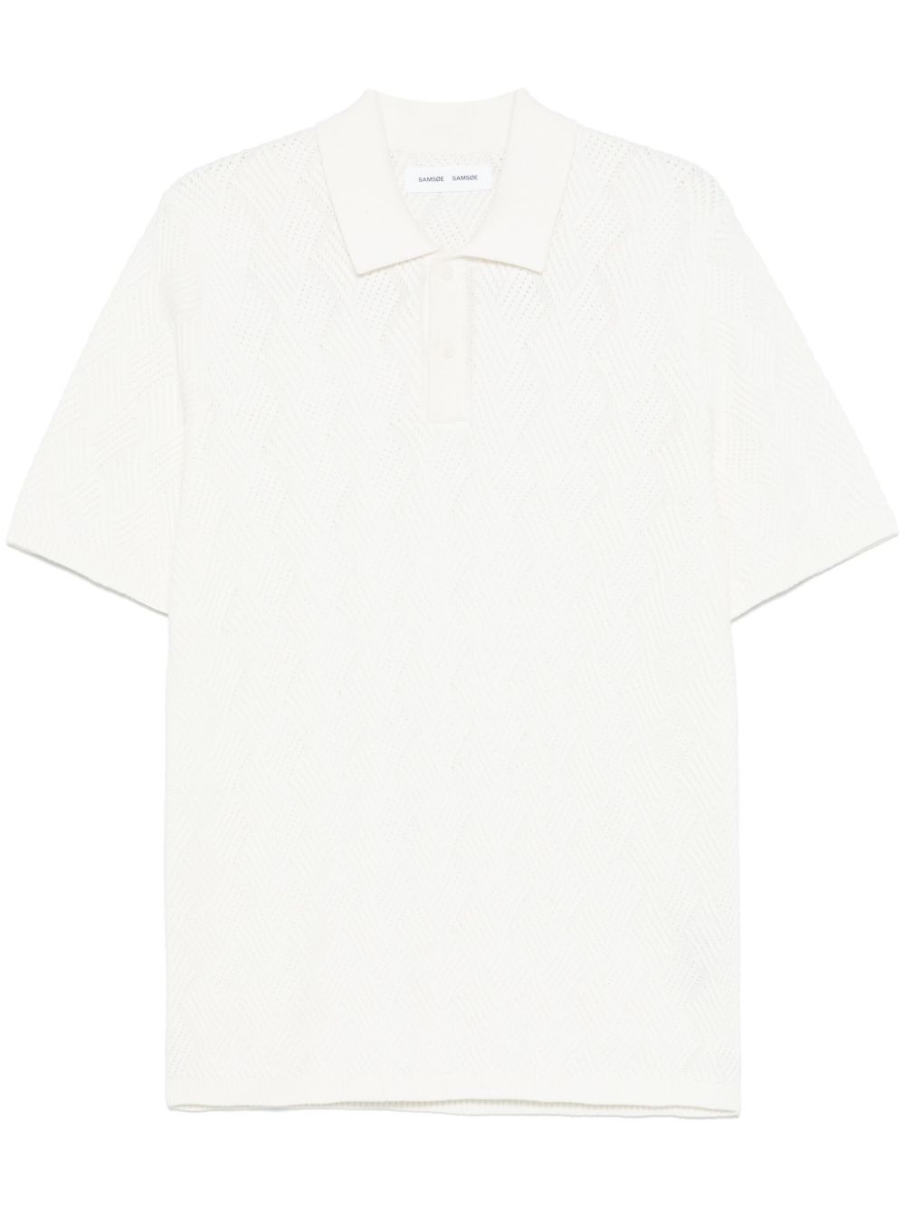 Safinn polo shirt Highlights - White - Short front button fastening - Ribbed cuffs and hem - Diamond pattern - Short sleeves Imported Composition Organic Cotton 85%, Wool 15% SIZE & FIT Model measurements Height 6 ft 2 in(1.87 m) Bust/Chest 37.79 in(96 cm) Hips 37.79 in(96 cm) Waist 30.31 in(77 cm) FittingInformation Designed for a regular fit, this polo shirt offers a comfortable loose fit throughout the body Made from a midweight non-stretch fabric, this piece offers minimal elasticity when worn