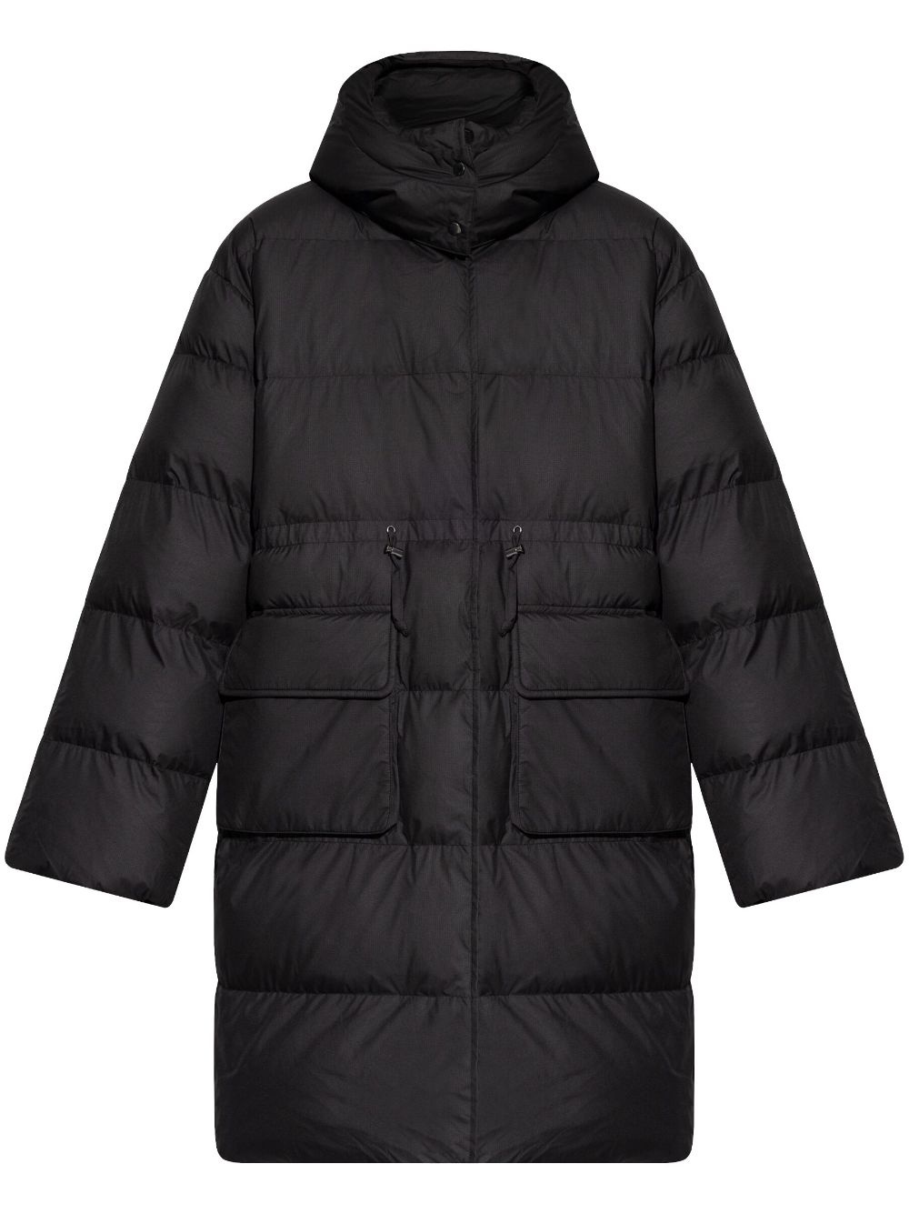 Sahanna puffer coat Highlights - Black - Padded design - Quilted - Front press-stud and zip fastening - Funnel neck - Detachable hood - Drop shoulder - Long sleeves - Drawstring waist - Two front flap pockets - Straight hem - Mid-length Imported Composition Polyester 100% Washing instructions Read Manufacturer Guidelines