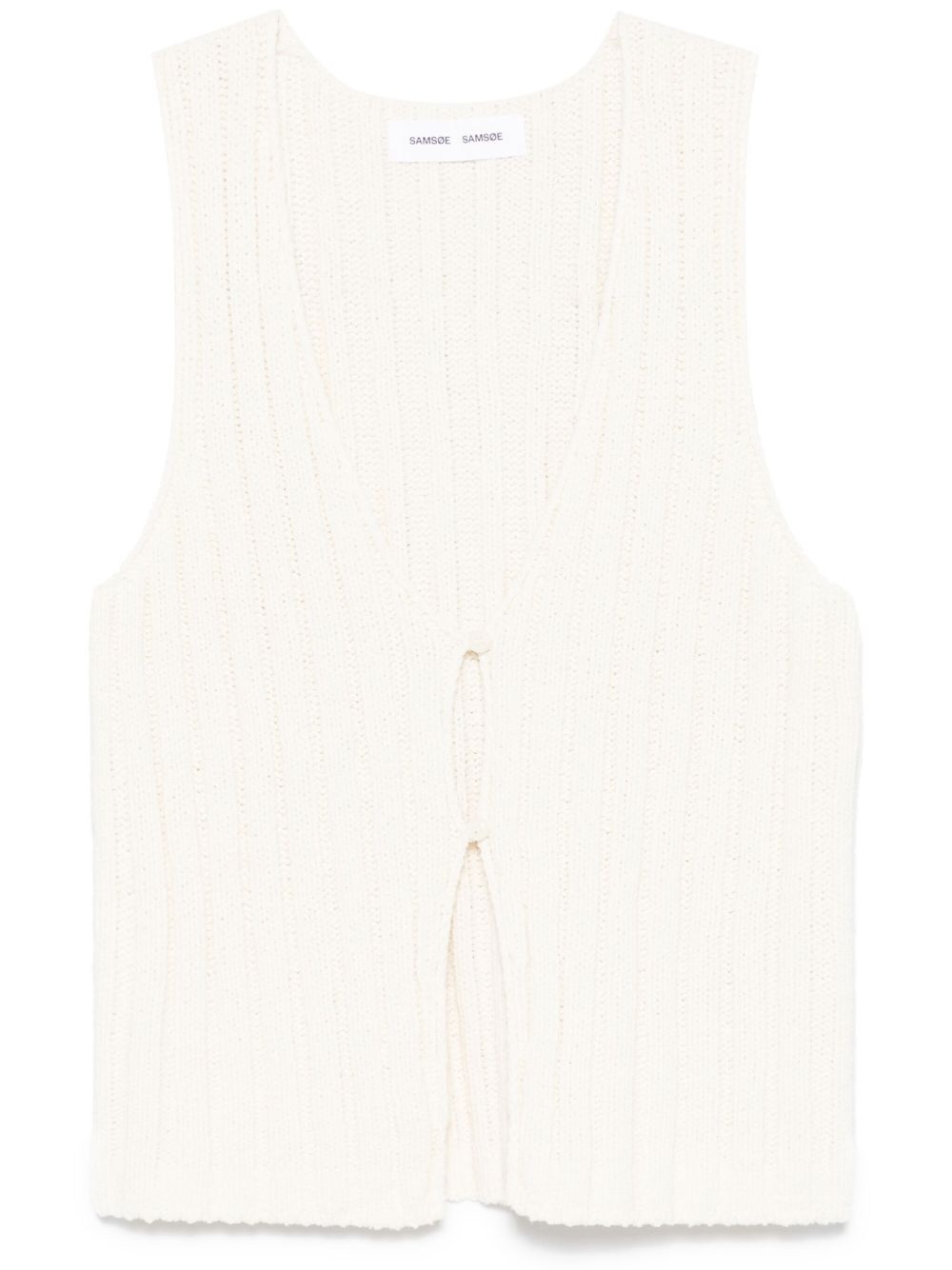 Salou vest Highlights - White - Front button fastening - V-neck - Sleeveless Imported Composition Organic Cotton 65%, Recycled Polyamide 35% SIZE & FIT Model measurements Height 5 ft 10 in(1.77 m) Bust/Chest 31.88 in(81 cm) Hips 36.22 in(92 cm) Waist 24.01 in(61 cm) FittingInformation Designed for a relaxed fit, this piece allows for comfort and movement when worn Made with a midweight knit, this piece offers some stretch