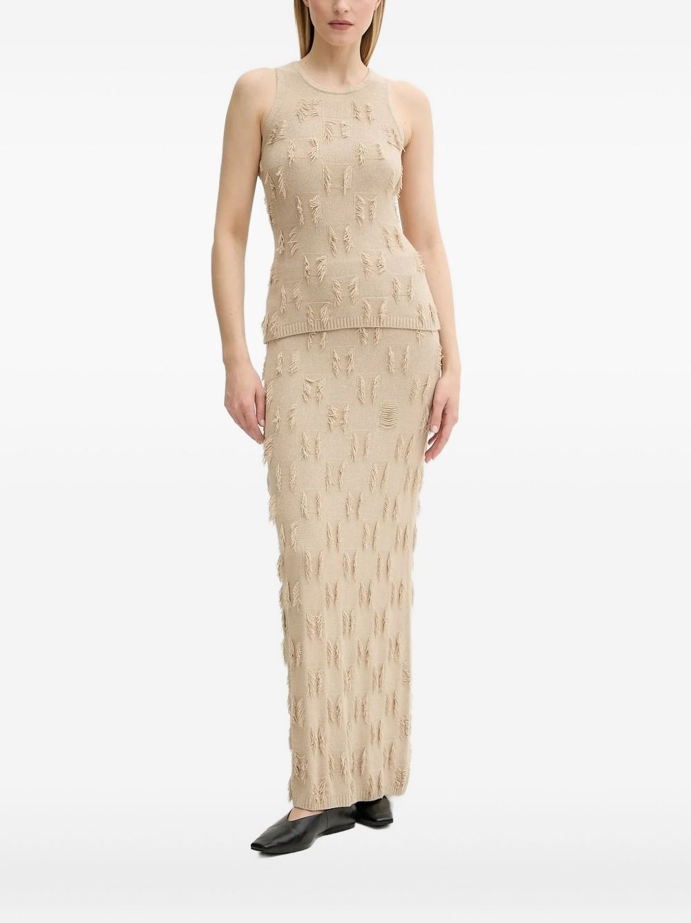 Samarla fringe-detail sleeveless top Highlights - Beige - Sleeveless design - Crew neck - Fringe embellishment - Knit texture - Geometric pattern Imported Composition EcoVero Viscose (LENZING) 68%, Recycled Polyamide 30%, Elastane 2% Washing instructions Read Manufacturer Guidelines