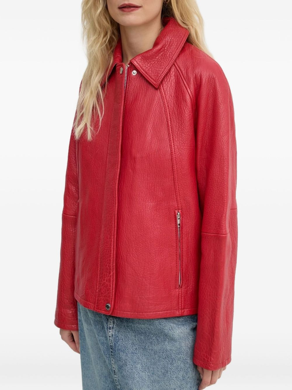 Sanok textured-leather zip-front jacket Highlights - Red - Textured leather - Zip-front fastening - Welt pockets - Notched collar - Button fastening at the collar Imported Composition Outer: Lamb Skin 100% Lining: Viscose 100% Washing instructions Read Manufacturer Guidelines