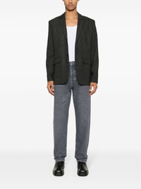 single-breasted pinstripe-pattern blazer Highlights - Dark grey/white - Pinstripe pattern - Notched lapels - Long sleeves - Buttoned-cuff sleeves - Two side flap pockets - Central rear vent - Internal slip pocket - Full lining - Front button fastening Imported Composition Outer: Wool 39%, Polyester 33%, Viscose 14%, Polyamide 13%, Elastane 1% Lining: Viscose 100% SIZE & FIT Model measurements Height 6 ft 2 in(1.87 m) Bust/Chest 38.18 in(97 cm) Hips 36.61 in(93 cm) Waist 29.13 in(74 cm) FittingInformation Designed for a regular fit, allowing for a comfortably loose fit throughout the body The vented hem offers movement at the rear Made from a midweight fabric This piece fits true to size – take your usual size