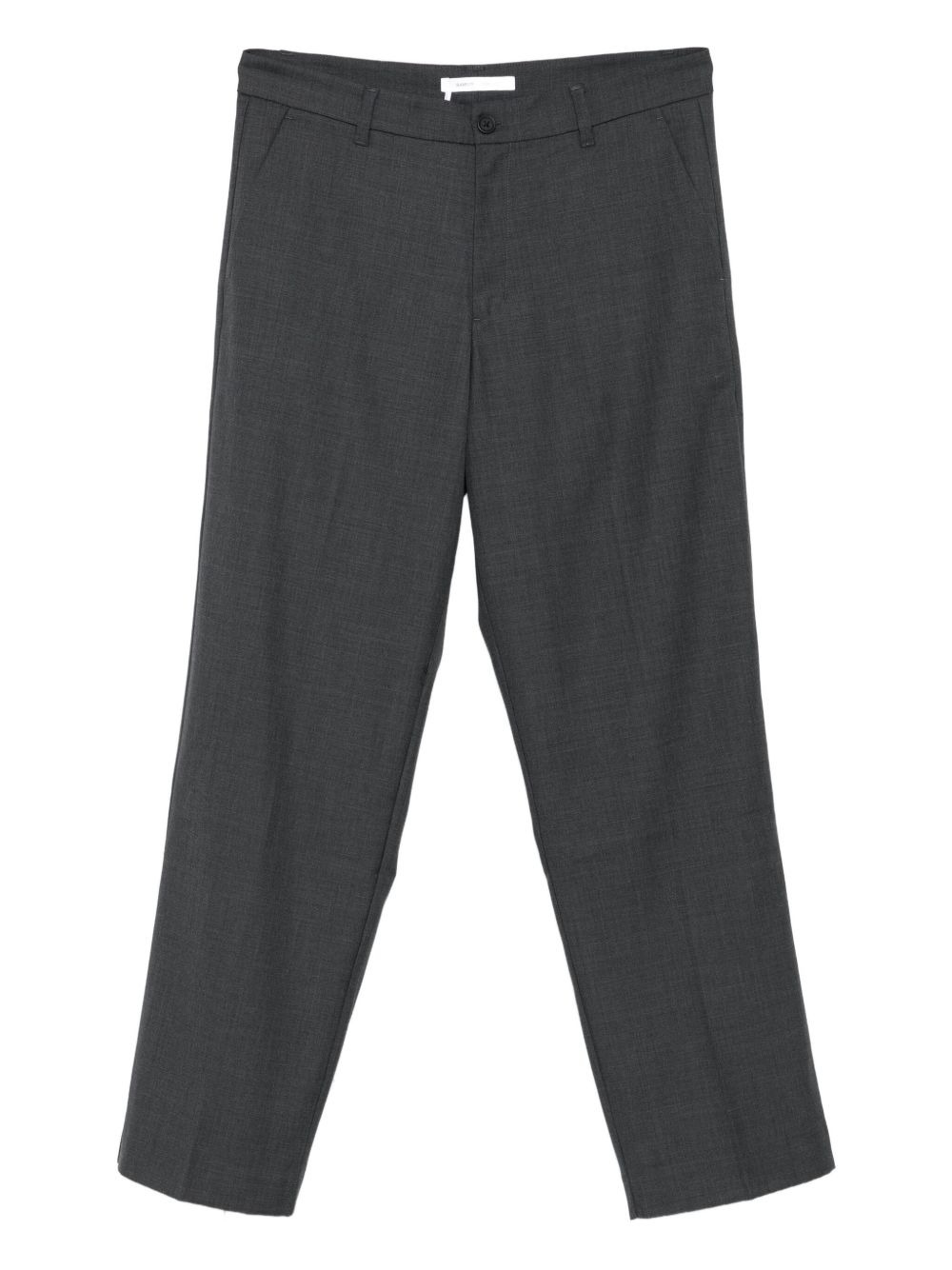 straight-leg trousers Highlights - Grey - Wool blend - Front button and zip fastening - Belt loops - Side slit pockets - Rear welt pockets Imported Composition Recycled Polyester 50%, Wool 50% SIZE & FIT Model measurements Height 6 ft 2 in(1.88 m) Bust/Chest 36.61 in(93 cm) Hips 35.82 in(91 cm) Waist 27.95 in(71 cm) Washing instructions Read Manufacturer Guidelines