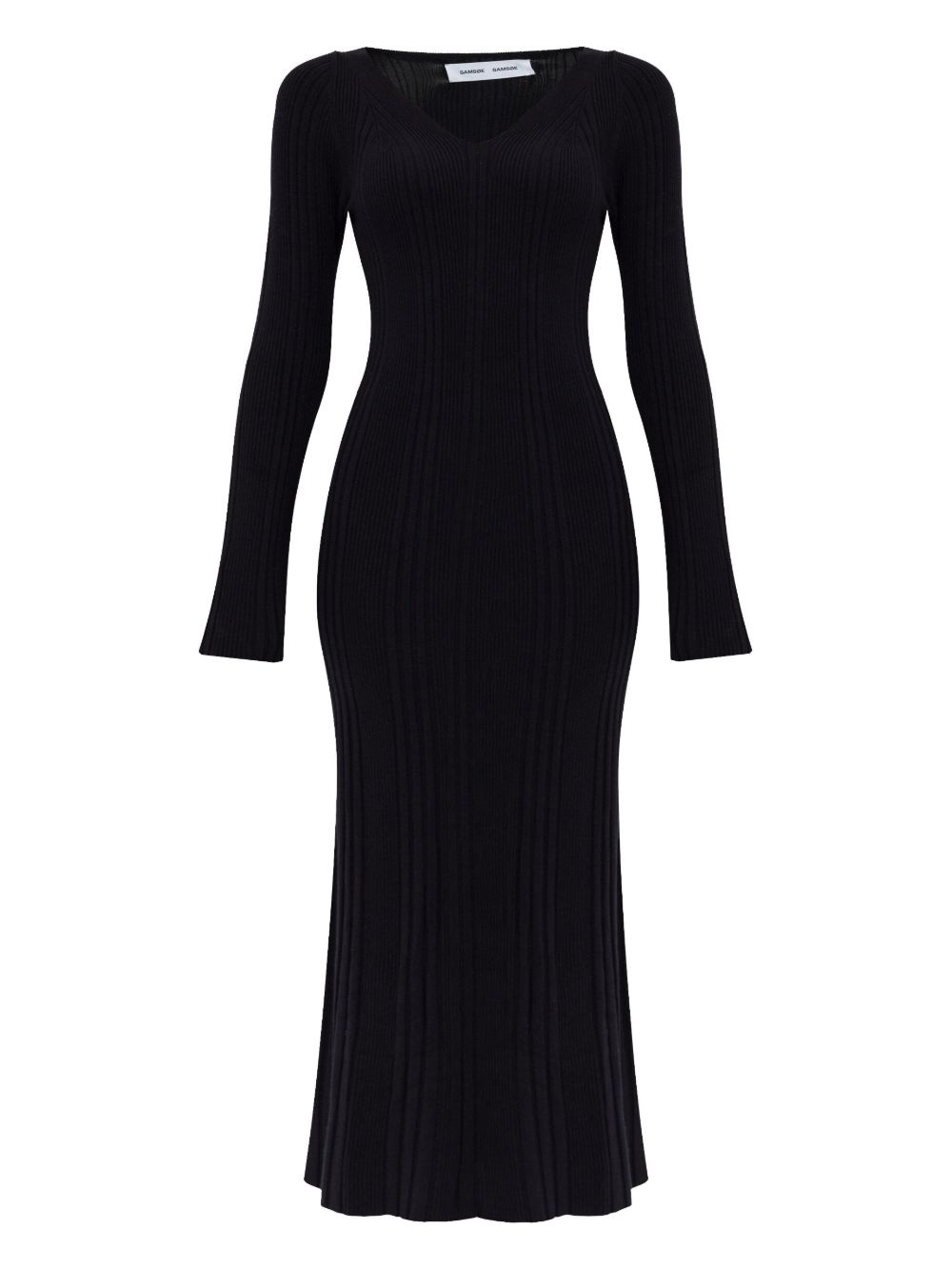 stretch dress Highlights - Black - V-neck - Long sleeves - Long length Imported Composition Viscose 84%, Polyamide 13%, Elastane 3%