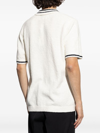 stripes-trim polo shirt Highlights - White - Short front button fastening - Ribbed cuffs - Straight hem - Short sleeves Imported Composition Outer: Organic Cotton 83%, Polyamide 17%