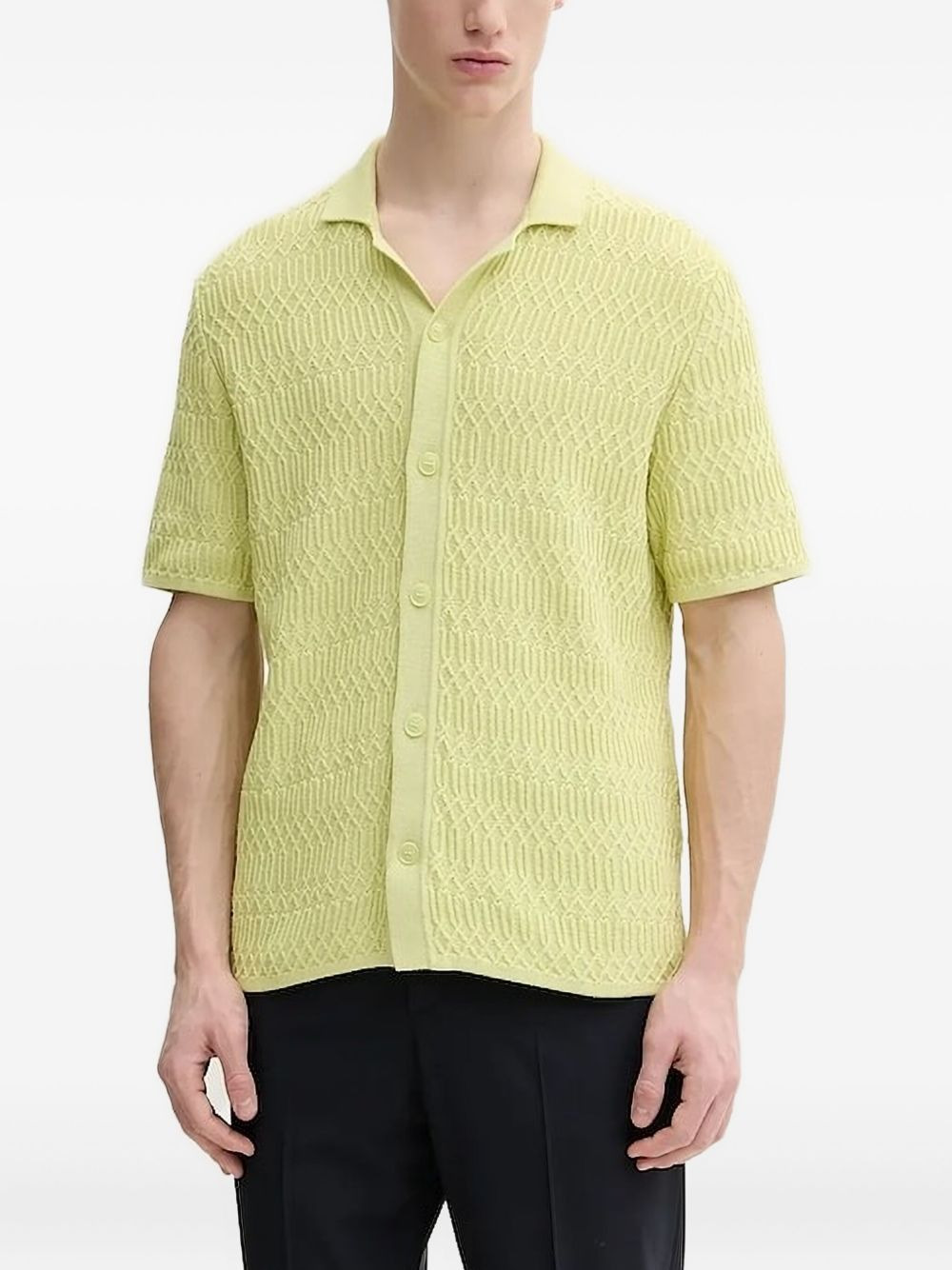 textured buttoned polo shirt Highlights - Lime green - Short sleeves - Knitted texture - Button fastening - Polo collar - Geometric pattern Imported Composition Organic Cotton 100% Washing instructions Machine Wash