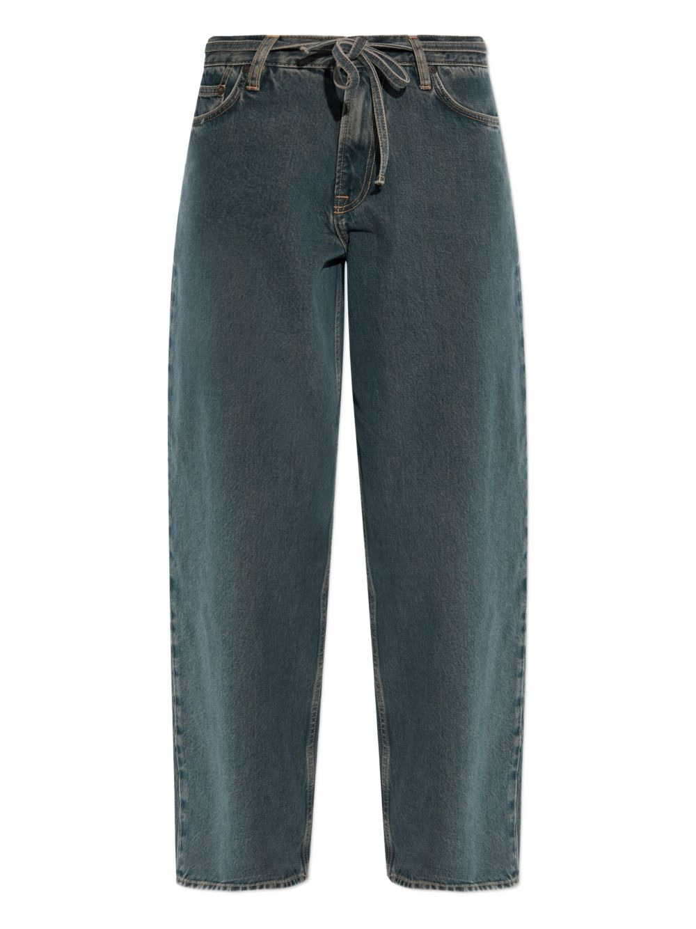 tie-waist logo patch denim jeans Highlights - Burnt oak - Tie waist - Five-pocket design - Button fly - Rear logo-patch Imported Composition Organic Cotton 100% Washing instructions Read Manufacturer Guidelines