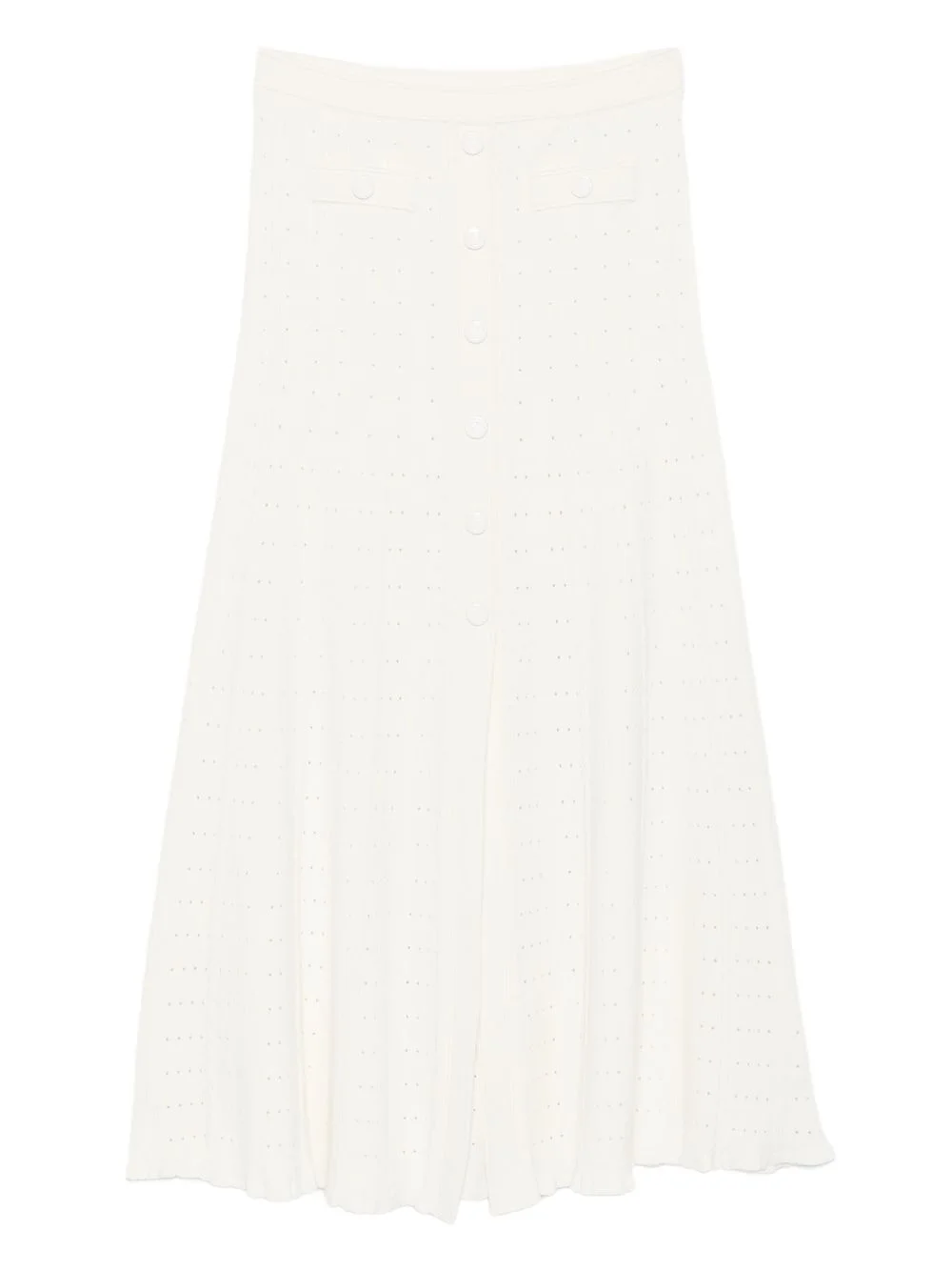 button-front flared midi skirt Highlights - Off-white - Flared hem - Button fastening - Front slit - Elasticated waist - Perforated knit Imported Composition Viscose 53%, Polyamide 45%, Elastane 2% Washing instructions Hand Wash