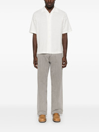 button-up shirt Highlights - White - Side slits - Camp collar - Short sleeves Imported Composition Cotton 55%, Linen/Flax 45% SIZE & FIT Model measurements Height 6 ft 0 in(1.84 m) Bust/Chest 35.82 in(91 cm) Hips 37 in(94 cm) Waist 28.34 in(72 cm) FittingInformation Designed for a boxy fit, intended for a loose fit throughout Made from a midweight non-stretch fabric Washing instructions Dry Clean Only