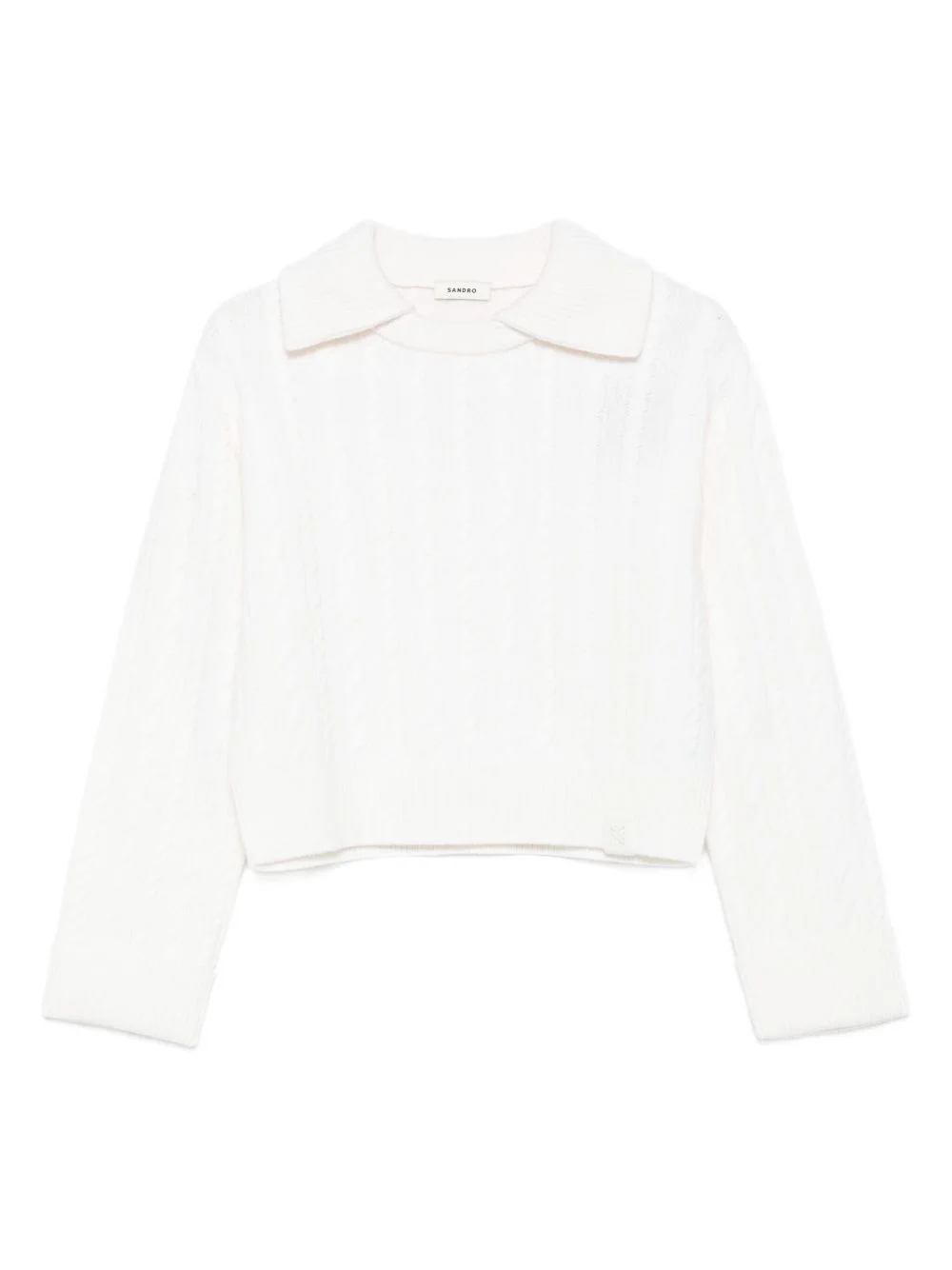 cable-knit collared sweater Highlights - Off-white - Cable knit - Spread collar - Long sleeves - Straight hem Imported Composition Wool 100% SIZE & FIT Model measurements Height 5 ft 9 in(1.75 m) Bust/Chest 32.67 in(83 cm) Hips 36.22 in(92 cm) Waist 24.8 in(63 cm) Washing instructions Hand Wash