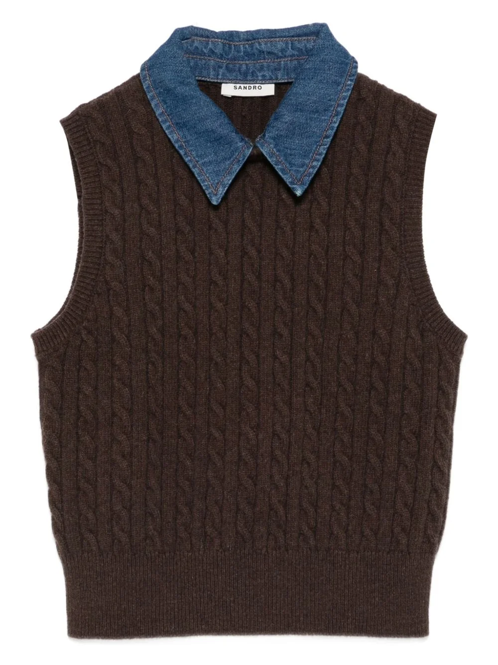 cable-knit vest Highlights - Brown - Cable knit - Sleeveless - Denim collar Imported Composition Wool 80%, Polyamide 20% Washing instructions Dry Clean Only