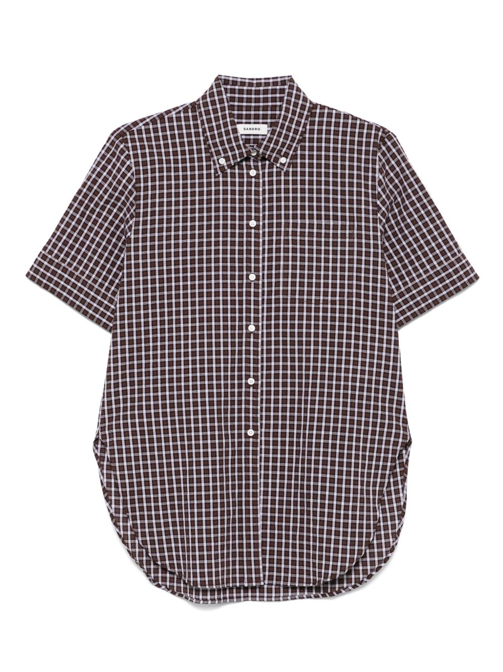 check-print shirt Highlights - Chocolate brown - Front button fastening - Chest patch pocket - Button-down collar - Short sleeves Imported Composition Mother of Pearl 100%, Cotton 99%, Elastane 1% Washing instructions Machine Wash