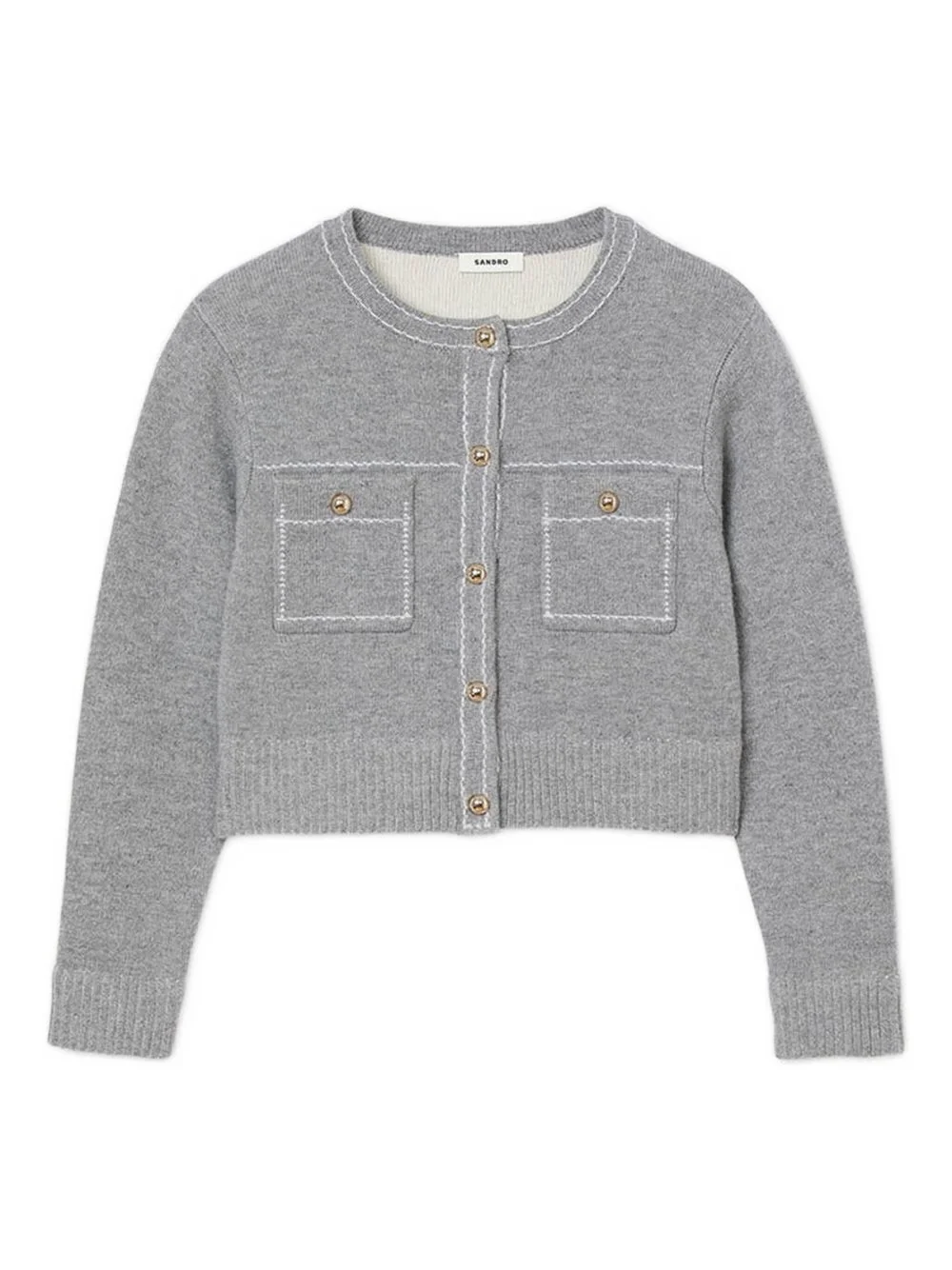 contrast-stitching cardigan Highlights - Grey - Round neck - Patch pockets - Button fastening - Long sleeves - Ribbed cuffs Imported Composition Wool 96%, Polyamide 4% Washing instructions Read Manufacturer Guidelines