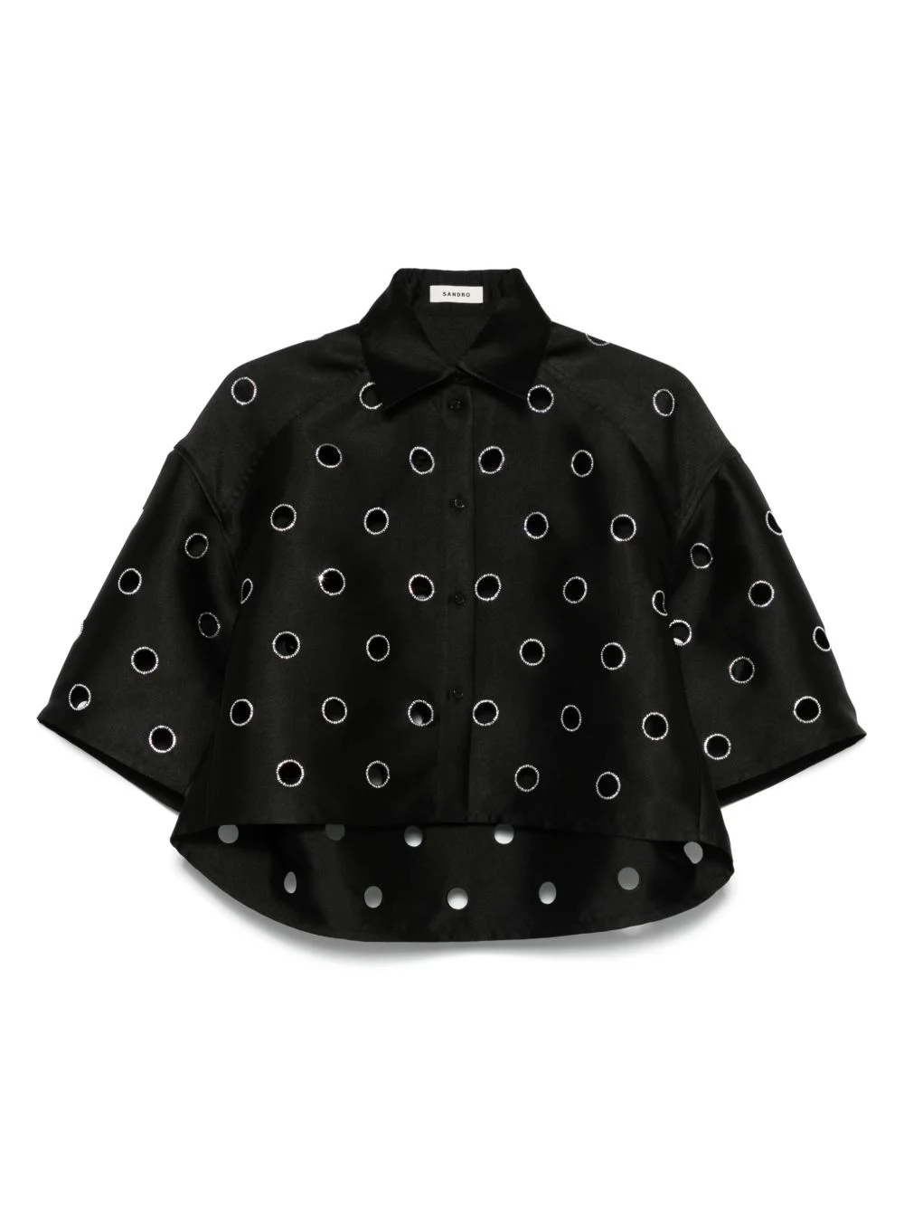 cut-out short-sleeve shirt Highlights - Black - Front button fastening - Cropped Imported Composition Polyester 100% Washing instructions Hand Wash
