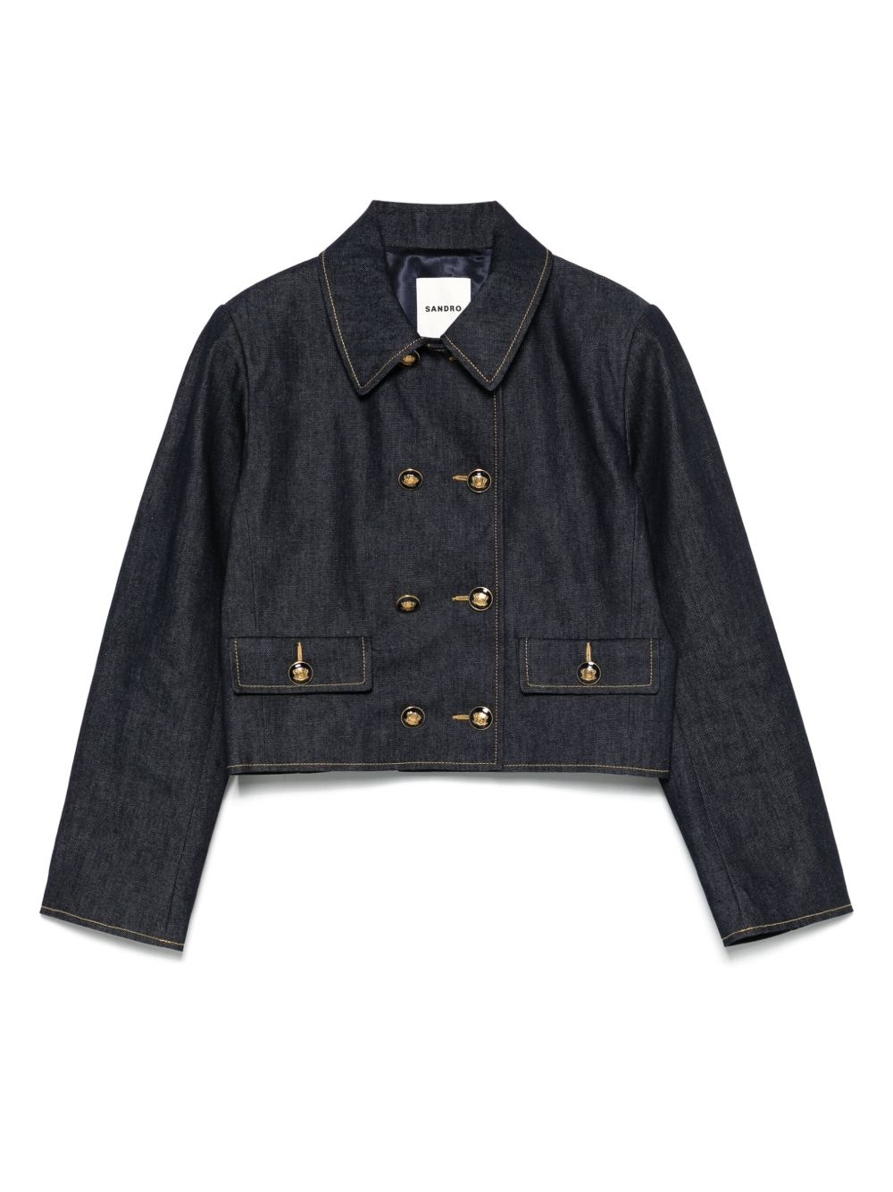 denim jacket Highlights - Navy blue - Front button fastening - Shoulder pads - Two front flap pockets - Cropped Imported Composition Outer: Cotton 100% Lining: Viscose 100% Washing instructions Dry Clean Only