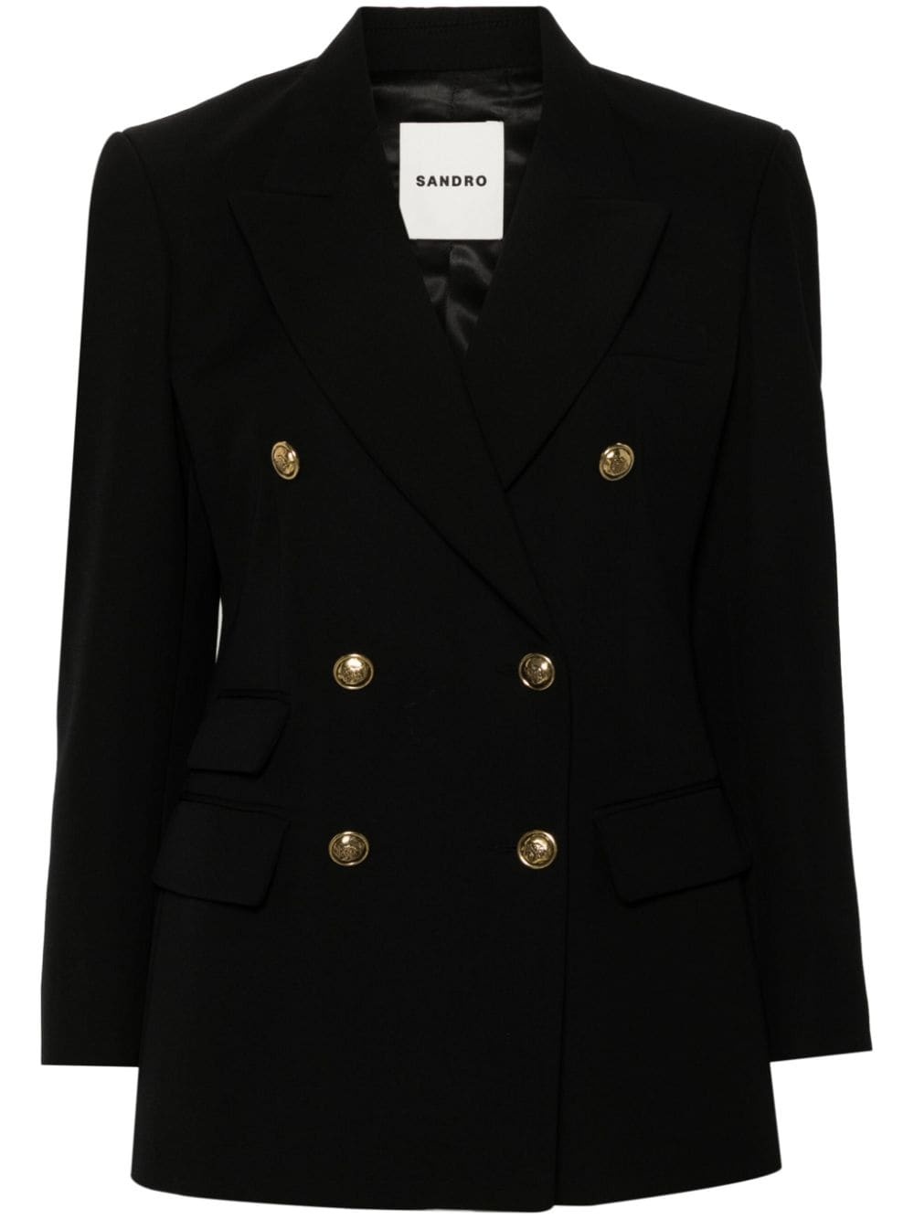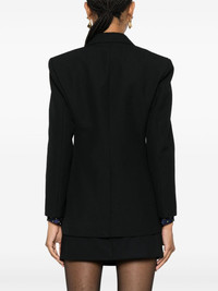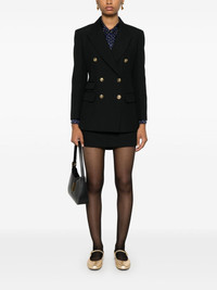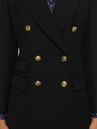 double-breasted blazer Highlights - Black - Twill weave - Double-breasted button fastening - Peak lapels - Shoulder pads - Long sleeves - Split cuffs - Chest welt pocket - Three front flap pockets - Central rear vent Imported Composition Lining: Viscose 100%, Cotton 100% Outer: Recycled Polyester 55%, Wool 45% SIZE & FIT Model measurements Height 5 ft 10 in(1.78 m) Bust/Chest 32.67 in(83 cm) Hips 35.43 in(90 cm) Waist 23.22 in(59 cm) FittingInformation Designed for a slim fit that sits just away from the body offering a close yet comfortable fit The internal shoulder pads offer a structured shape Made from a midweight non-stretch fabric This piece fits true to size – take your usual size Washing instructions Dry Clean Only