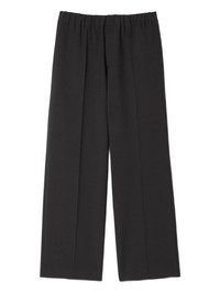 elasticated-waist wide-leg trousers Highlights - Dark grey - Wide leg - Elasticated waist - Side pockets Imported Composition Polyester 68%, Viscose 28%, Elastane 4% SIZE & FIT FittingInformation Designed for a straight-leg, allowing for an unrestricted and comfortable fit over the leg The elasticated waist allows for a comfortable fit Made from a midweight stretch fabric, this piece offers elasticity and flexibility when worn Washing instructions Machine Wash