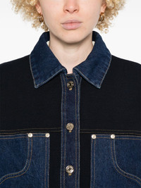 layered denim cardigan Highlights - Navy blue - Front button fastening - Two front patch pockets - Contrasting collar - Contrast stitching Imported Composition EcoVero Viscose (LENZING) 60%, Polyester 22%, Polyamide 18% SIZE & FIT Model measurements Height 5 ft 9 in(1.75 m) Bust/Chest 34.64 in(88 cm) Hips 36.61 in(93 cm) Waist 26.37 in(67 cm) FittingInformation Designed to be unstructured, offering a loose fit throughout Made with a midweight knit, this piece offers some stretch Washing instructions Hand Wash