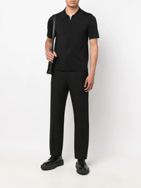 half-zip fastening polo shirt Highlights - Jet black - Polo collar - Half front zip fastening - Short sleeves - Straight hem Imported Composition NAIA™ Cellulosic Fiber 83%, Polyamide 14%, Spandex/Elastane 3% SIZE & FIT Model measurements Height 6 ft 2 in(1.89 m) Bust/Chest 36.22 in(92 cm) Hips 37.79 in(96 cm) Waist 29.52 in(75 cm) FittingInformation This piece fits true to size. We recommend you get your regular size Cut for a slim fit Made with a mid-weight stretch fabric Washing instructions Hand Wash