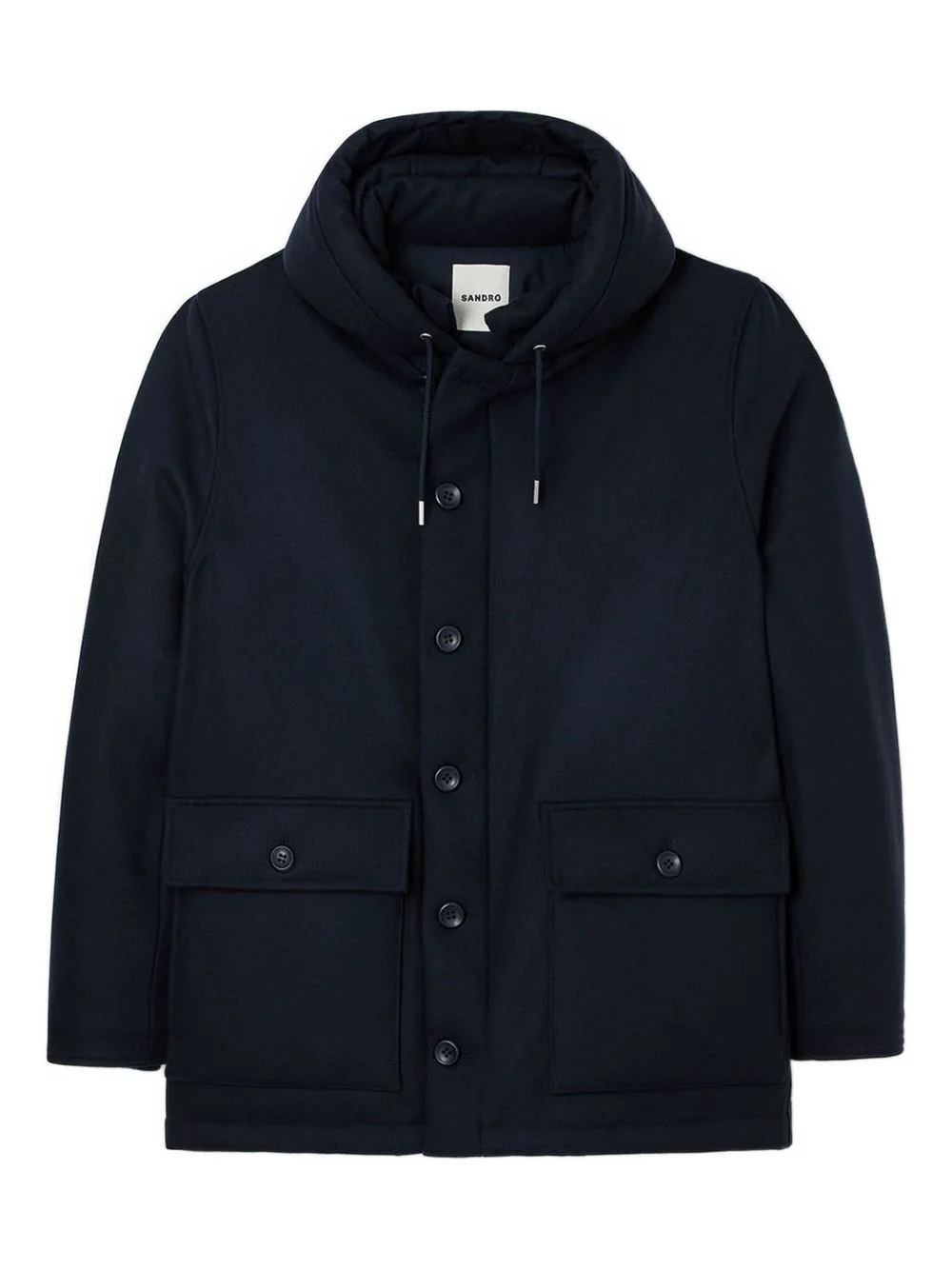 hooded pocket coat Highlights - Navy blue - Drawstring - Button fastening - Front flap pockets - Hooded Imported Composition Fabric 100% Washing instructions Read Manufacturer Guidelines