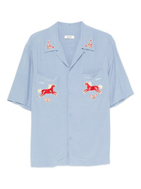 horse-embroidered shirt Highlights - Blue - Horse embroidered - Polo collar - Short sleeves - Patch pockets Imported Composition Viscose 100% SIZE & FIT Model measurements Height 6 ft 1 in(1.85 m) Bust/Chest 38.58 in(98 cm) Hips 37 in(94 cm) Waist 30.31 in(77 cm) Washing instructions Read Manufacturer Guidelines