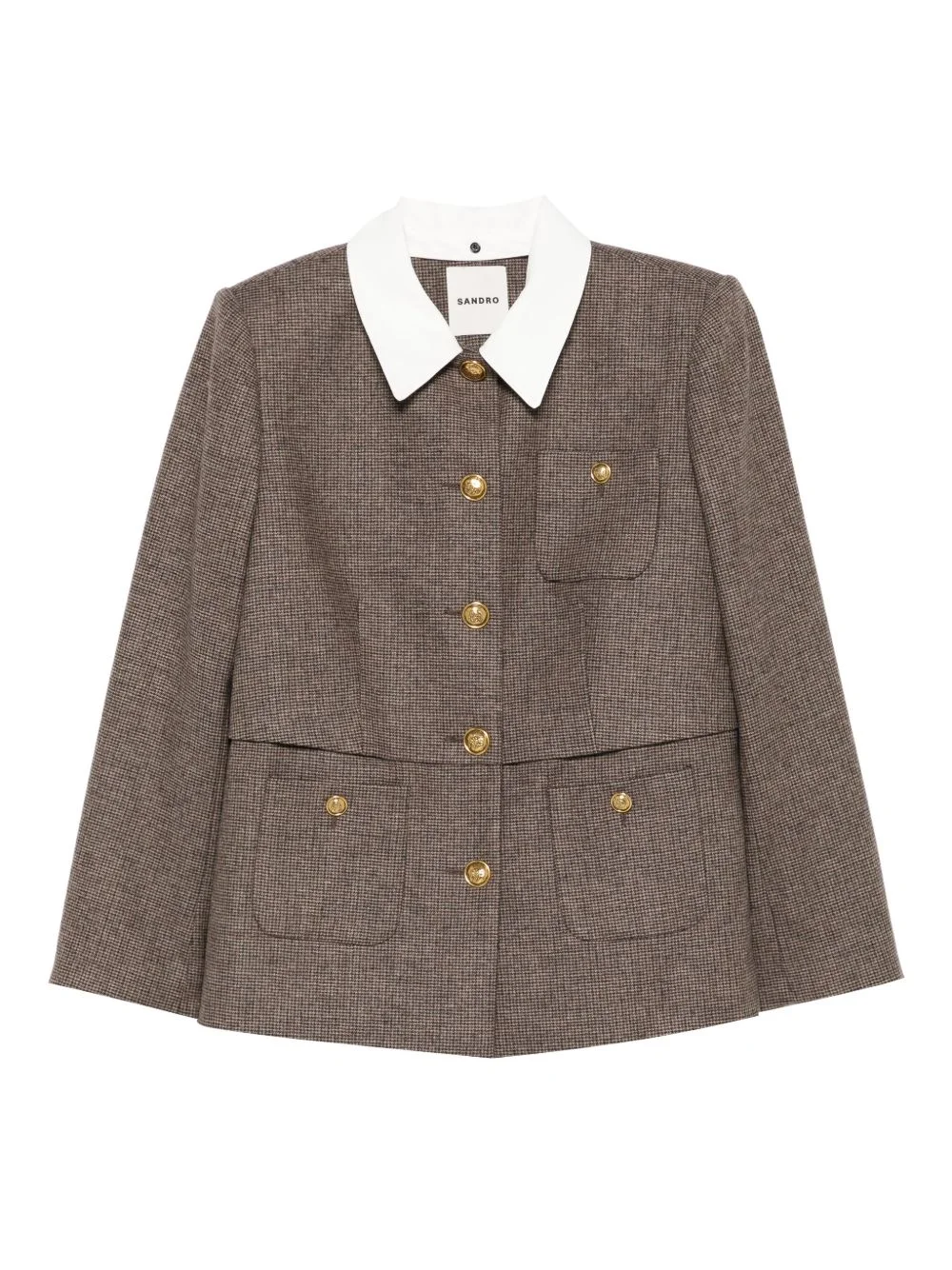 houndstooth detachable-collar jacket Highlights - Brown - Houndstooth pattern - Detachable contrasting collar - Buttoned pockets - Button fastening - Long sleeves Imported Composition Outer: Virgin Wool 60%, Polyester 38%, Elastane 2% Lining: Viscose 100%, Cotton 100% SIZE & FIT Model measurements Height 5 ft 11 in(1.8 m) Bust/Chest 32.67 in(83 cm) Hips 36.22 in(92 cm) Waist 24.4 in(62 cm) Washing instructions Dry Clean Only