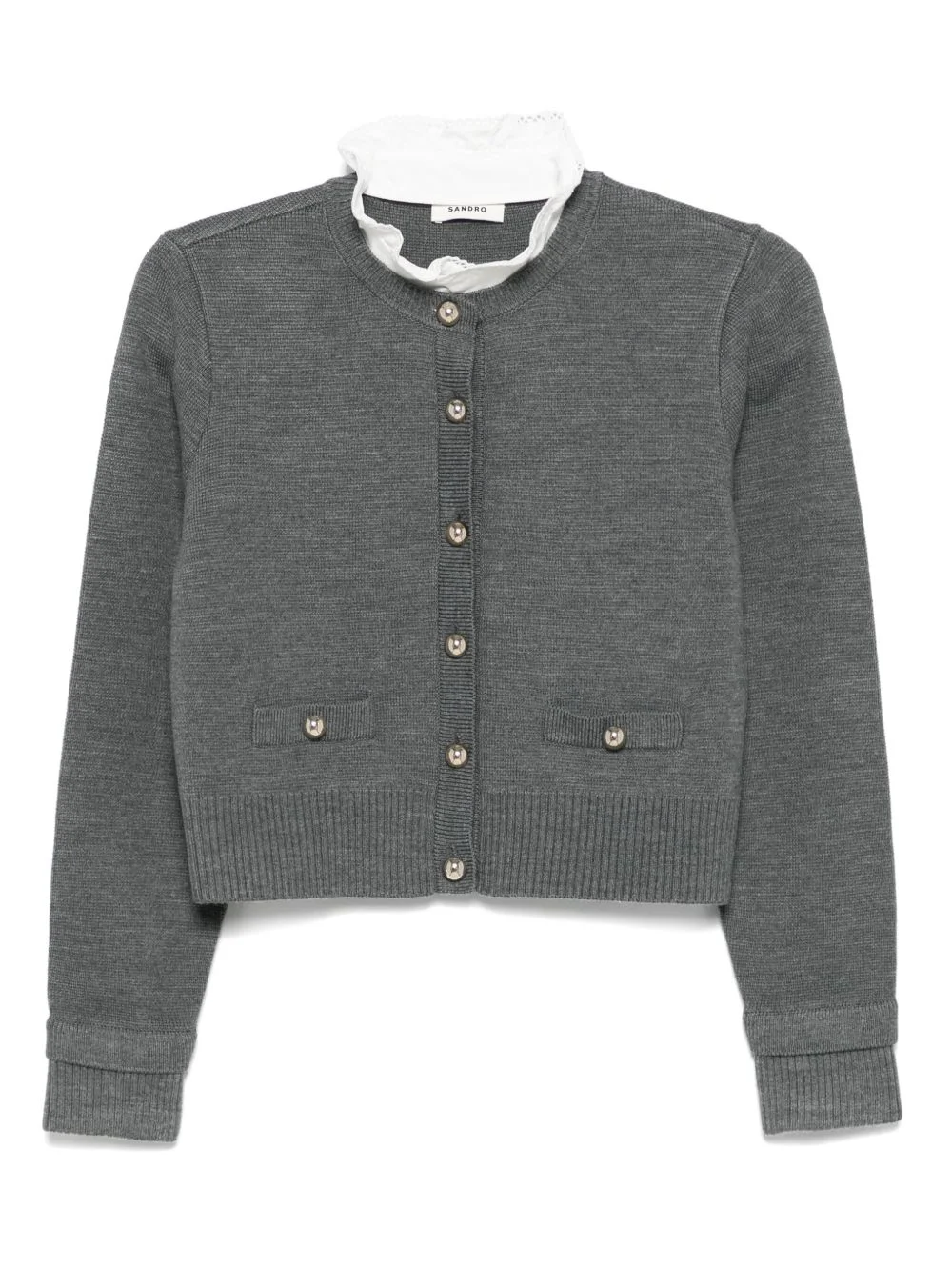 knitted cardigan Highlights - Grey - Front button fastening - Round neck - Long sleeves Imported Composition Acrylic 51%, Wool 49% SIZE & FIT Model measurements Height 5 ft 10 in(1.79 m) Bust/Chest 33.07 in(84 cm) Hips 35.82 in(91 cm) Waist 24.01 in(61 cm) FittingInformation Designed for a relaxed fit, this piece allows for comfort and movement when worn Made from a midweight non-stretch fabric, this piece offers minimal elasticity when worn Washing instructions Hand Wash