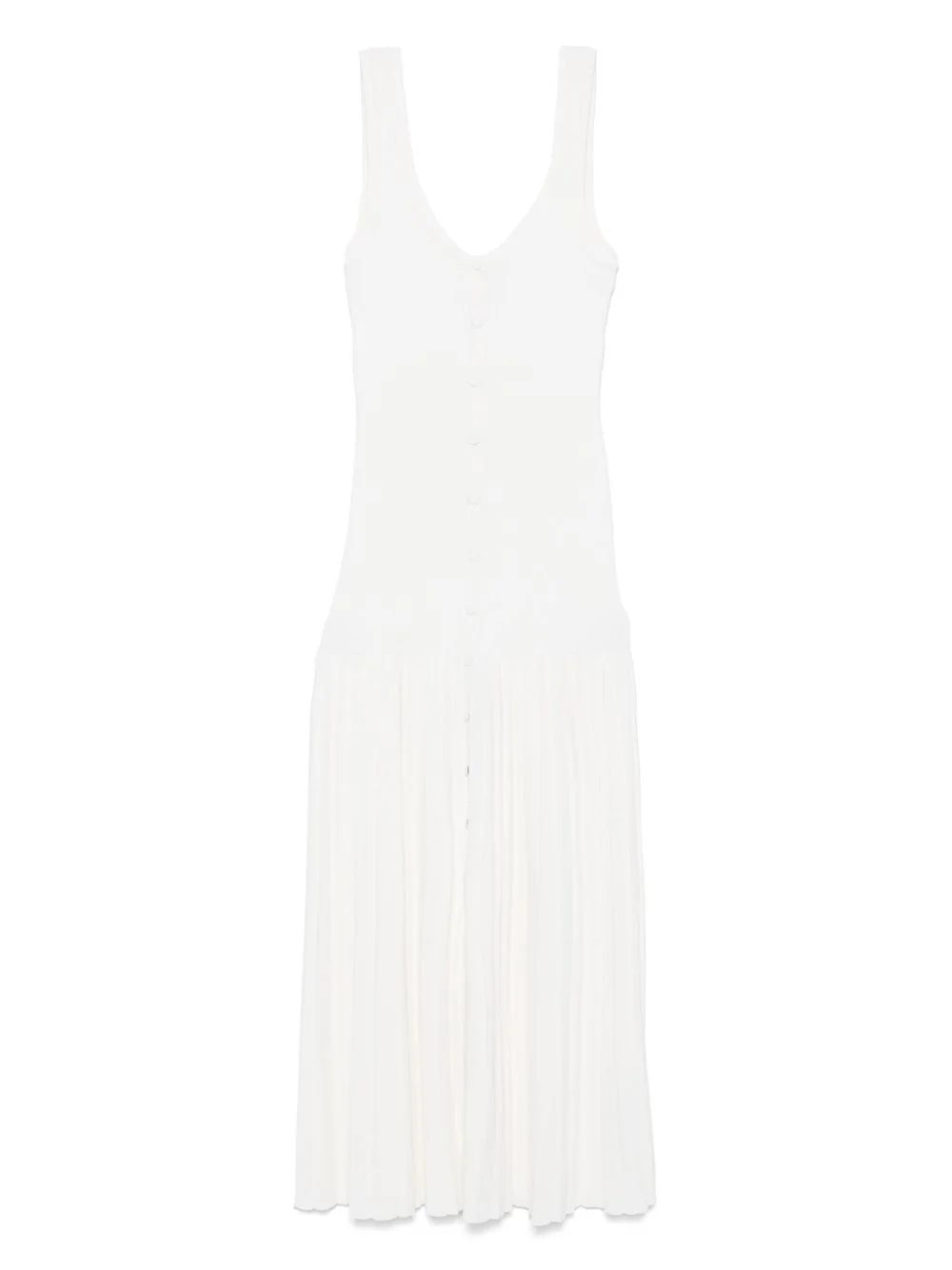 knitted midi dress Highlights - White - Front button fastening - Scoop neck - Sleeveless Imported Composition Viscose 51%, Polyamide 47%, Elastane 2% Washing instructions Hand Wash