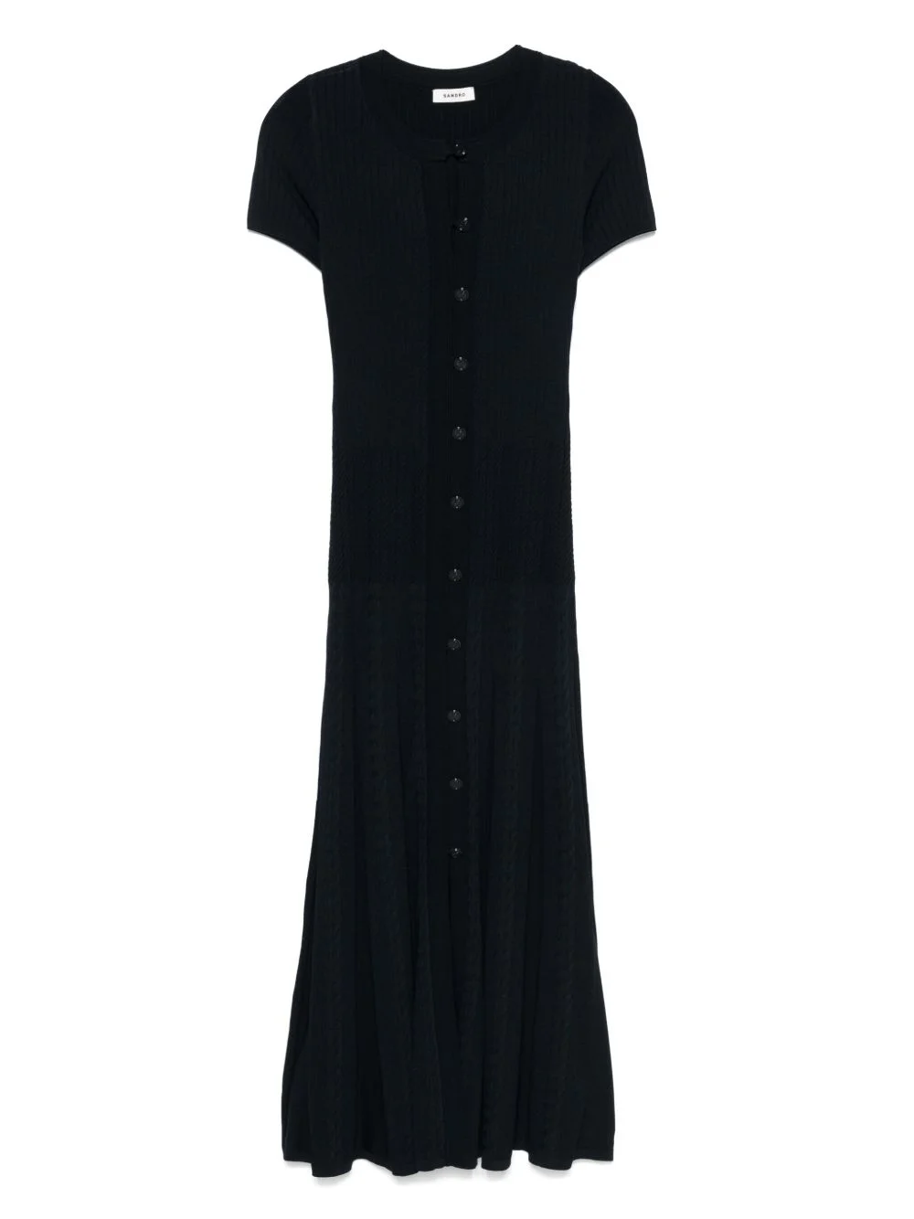 knitted midi dress Highlights - Navy blue - Front button fastening - Round neck - Short sleeves Imported Composition Fabric 100% SIZE & FIT Model measurements Height 5 ft 10 in(1.79 m) Bust/Chest 33.07 in(84 cm) Hips 35.82 in(91 cm) Waist 24.01 in(61 cm) FittingInformation Designed for a slim fit that sits just away from the body offering a close yet comfortable fit Made from a midweight fabric Washing instructions Dry Clean Only